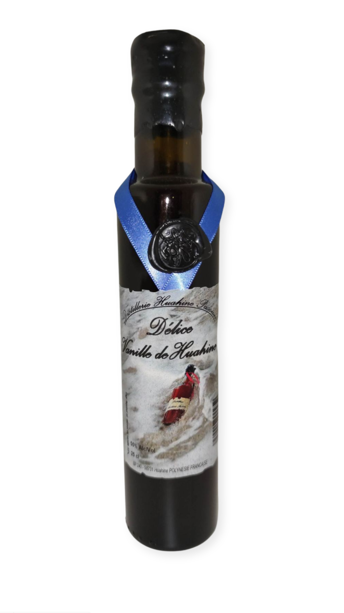 Eau de vie de Huahine à base de vanille produite localement.