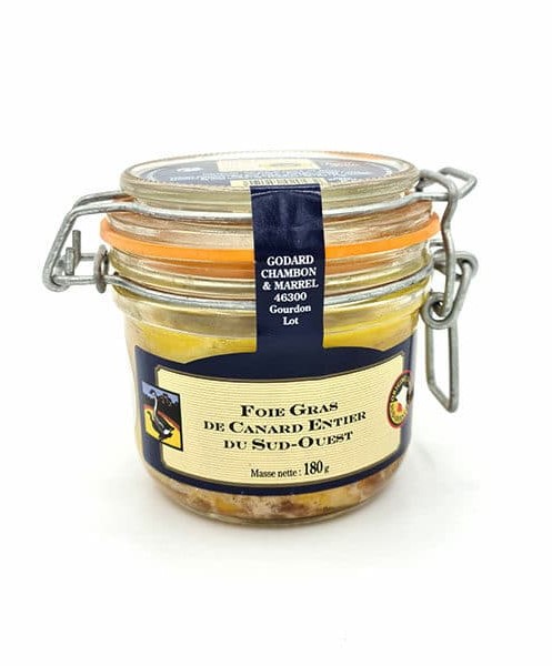 Le foie gras de canard entier du Sud-Ouest, élaboré avec les plus beaux foies gras attentivement sélectionnés, révèle un parfum subtil. La noblesse de sa saveur rustique parle pour lui. Présentez-le en fines tranches soigneusement découpées. Selon vos goûts ou ceux de vos invités, vous pouvez l’accompagner d’un vin moelleux, Sauternes ou Monbazillac, ou de toasts à la mie généreuse.