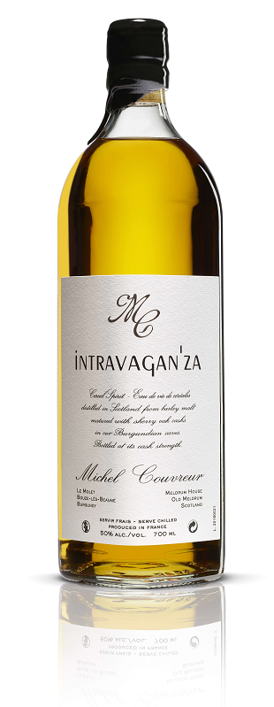 L’Intravagan’za est une boisson spiritueuse de céréales de malt, distillé par méthode charentaise en Écosse et élevé durant trois ans en fûts frais de vin de Xérès très fin.