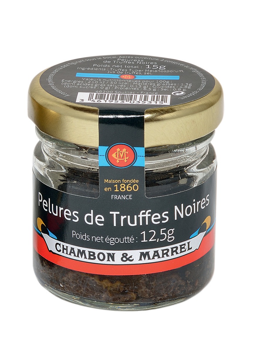 Les Pelures de Truffes Noirs du Perigord sont constituées de lamelles et de petits morceaux de Truffes. Idéale pour vos farces, brouillades…