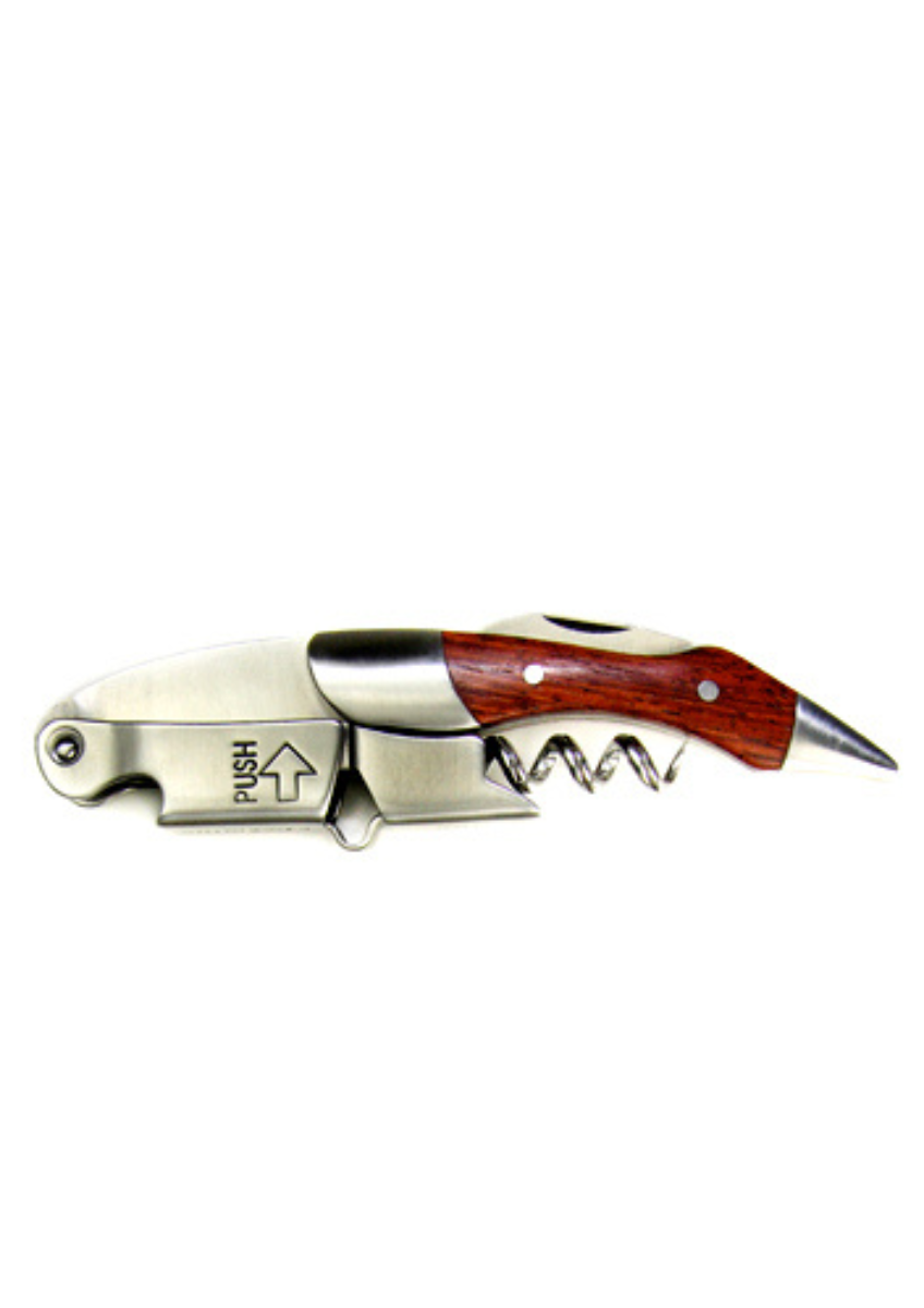 Ouvrez facilement n’importe quelle bouteille de vin avec ce sommelier prestige en bois foncé avec avec coupe capsule. Ce tire-bouchon possède une belle poignée en bois qui le rend facile à tenir et à utiliser.